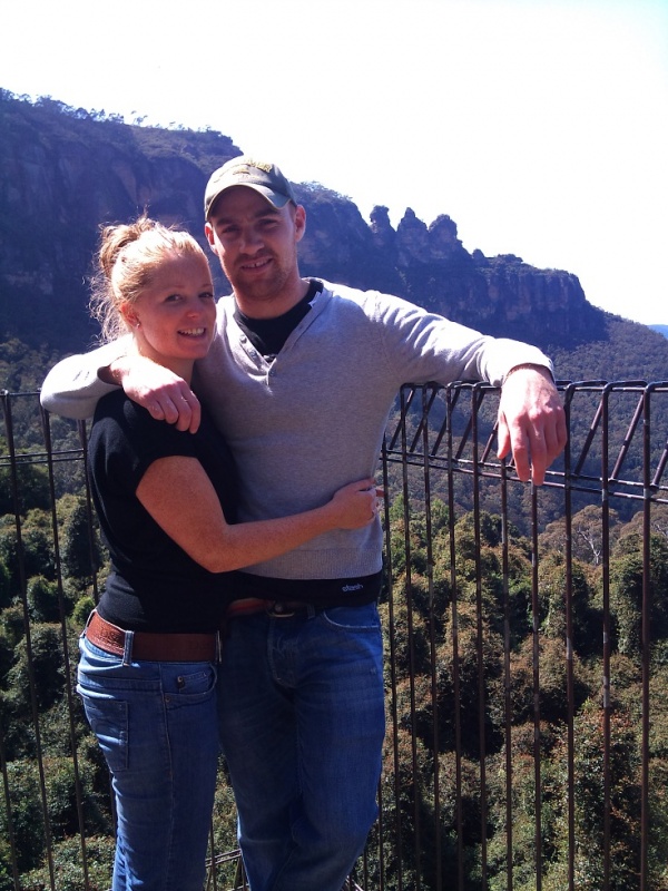Ik en Alex met op de achtergrond The Three Sisters, Blue Mountains